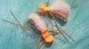 A new method of building segmented bodies on nymphs. The Alien Stonefly uses black and clear plastic shrink tubing over dubbing for the tail and body of the fly.