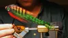 Patrick Sessoms of Due South Outfitters showing off his "Werthers Midge" which resembles a dead scud.