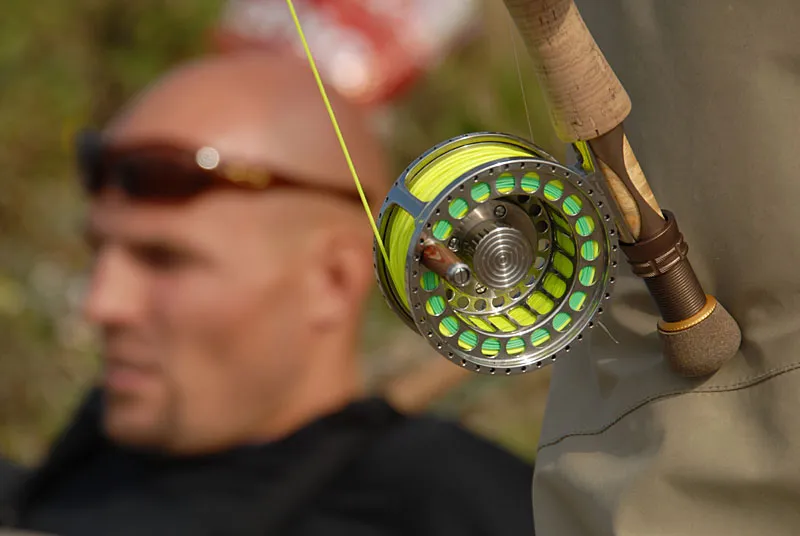 A hand made titanium reel. It belongs to Jesper, visible in the background.