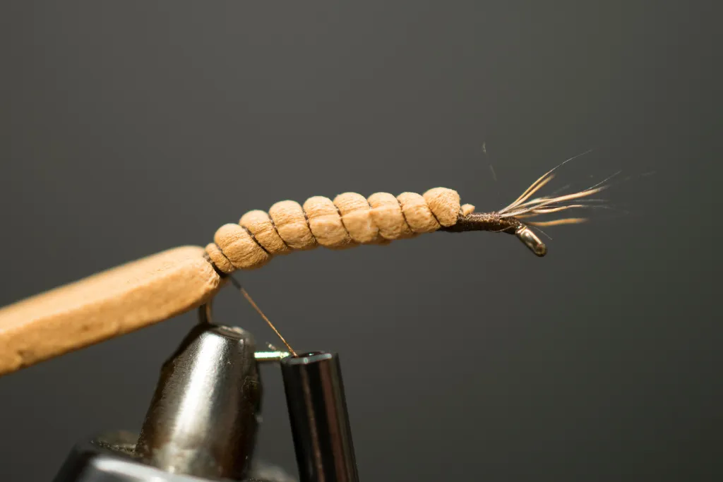 Tie in the foam tip in the front and tie down with open thread wraps to the hook bend and a bit