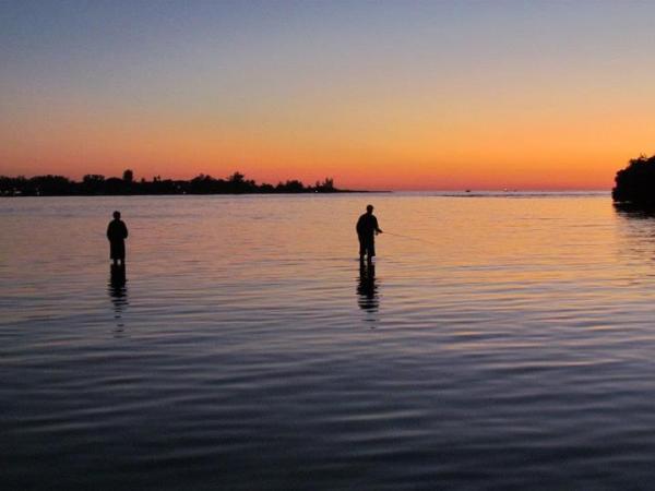Dave Porter and my son Kaleb chasing down some redfish at sunset. Using home made crab and shrimp patterns.